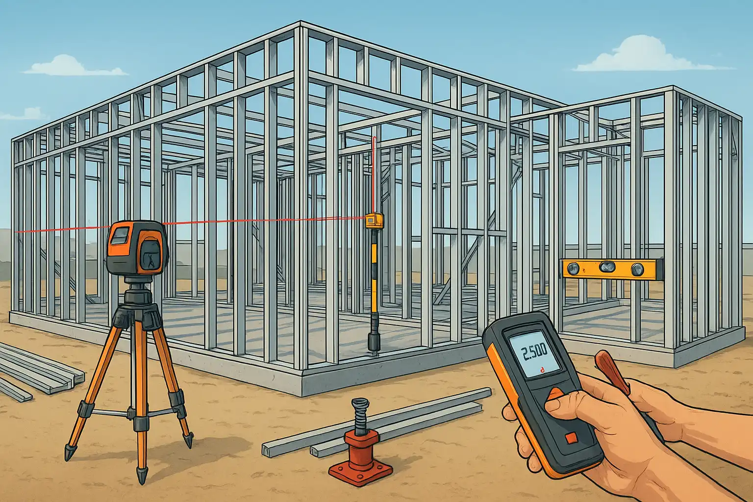 کنترل دقیق شاقول و تراز در نصب و اجرای سازه ال اس اف (LSF) از اهمیت بالایی برخوردار است و تضمین‌کننده دوام، ایمنی و کیفیت نهایی ساختمان می‌باشد. استفاده از ابزارهای پیشرفته مانند تراز لیزری خطی و گردان، متر لیزری دیجیتال، شاقول دیجیتال و جک تنظیم پروفیل به همراه رعایت تلرانس‌های مجاز (معمولاً کمتر از ۲ میلی‌متر) باعث کاهش خطاهای اجرایی می‌شود. کنترل مستمر از فونداسیون تا نصب نهایی هر ماژول، جلوگیری از انحرافات و انتقال خطا به قطعات بعدی را ممکن می‌سازد. همچنین آموزش نیروی انسانی، شرایط محیطی مناسب و پیروی از استانداردهای اجرایی نقش کلیدی در افزایش دقت دارد. اجرای دقیق کنترل شاقول و تراز موجب جلوگیری از مشکلاتی مانند کج شدن سازه، ترک دیوارها، و اختلال در نصب درب و پنجره‌ها می‌شود. در پروژه‌های چند طبقه و بزرگ، بهره‌گیری از نرم‌افزارهای دیجیتال و ابزارهای ژئودزیک دقت و سرعت کار را افزایش می‌دهد. در صورت مشاهده انحراف خارج از تلرانس مجاز، اصلاح فوری با جک‌ها یا بازسازی قطعات ضروری است تا کیفیت و ایمنی سازه حفظ گردد. رعایت نکات فنی و کاربردی ضمن استفاده از تجهیزات مدرن، کلید موفقیت در اجرای سازه‌های ال اس اف است.
